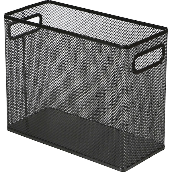 Steel tabletop file for hanging file folders keeps your letter-size files standing on your desktop and ready for frequent use. Mesh exterior easily lets you see what's inside in case any small elements fall out of your files. Use the steel offset handles on the side to carry it from worksurface to worksurface. Use the label on one side for easy reference at a glance. Extra-capacity, hanging file holder is made of mesh steel with steel C rims on the top and bottom.
