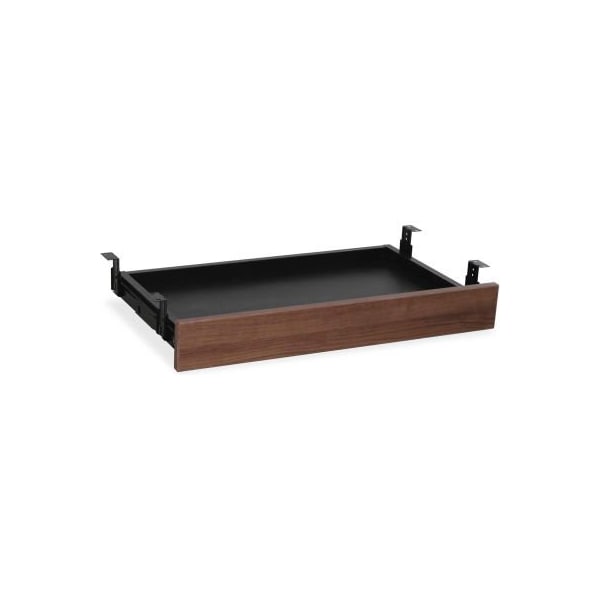 Lorell walnut laminate office suite desking, 25.6w x 15.1d x 3.6h universal center drawer can be easily attached to desks in the lorell essentials series and most other desks with an adjustable mount. Drawer slides under the desk and out for easy access. Drawer features a durable laminate surface. view the essentials collection here.