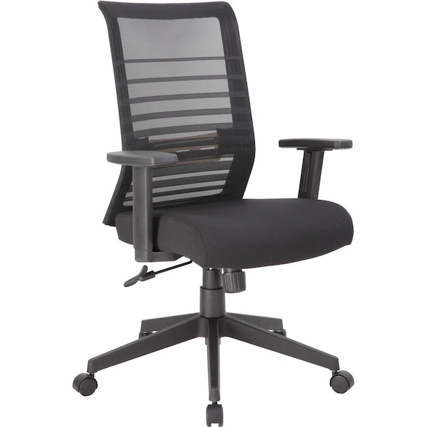 Horizontal Mesh Back Task Chair with synchro-tilt mechanism is designed with comfort and ease in mind. Seat covers in different colors are sold separately so you can personalize your chair to match your decor. Synchro-tilt mechanism allows the backrest and seat to tilt in unison. Back tilts more than seat and is also tension-adjustable. Task chair also features adjustable arms, seat slider and pneumatic gas lift for easily adjustable, seat height from 18-1/2" to 21-1/2". Breathable mesh back includes horizontal bands for tighter mesh and a different look. Fabric-upholstered, cushioned seat measures 19" wide x 19" deep. Arm height adjusts from 25" to 31" high. Weight capacity is 275 lb.