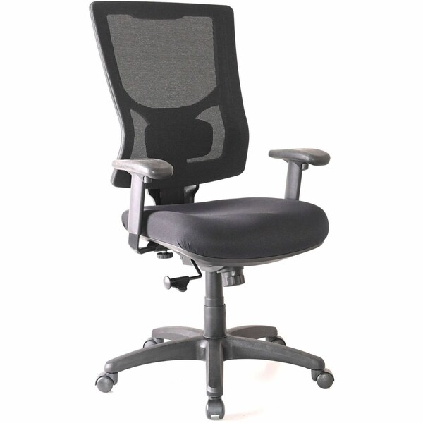 Conjure High-Back Swivel/Tilt Office Chair gives you more control with an on-off control level for the swivel tilt mechanism so you can better personalize it according to your body type. Adjust the height of the built-in ratchet back and lumbar support. High-strength mesh upholstery covers the back for breathable, cradling comfort. Arms adjust in height and width and are cushioned with soft polyurethane pads. Fabric-covered seat lets you sink into thick, polyurethane molded foam for more support throughout the workday. Other functions include tilt tension adjustment and 360-degree swivel. Reinforced nylon base is equipped with nylon casters for easy mobility. Weight capacity is 275 lb.