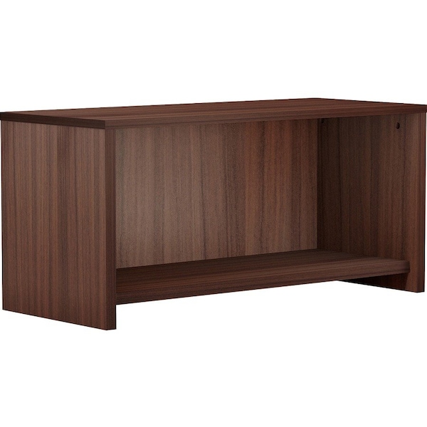 Expand your overhead storage opportunities with this wall-mounted hutch. Use over a desk, lateral file and more to customize your work area. Wall-mounting means you don't have to use an exact width match. Espresso laminate and design match Lorell Essential Series furniture. In case you need privacy for your storage, door kits in glass and wood for this hutch are sold separately. Bottom panel and side panels are almost 1" thick (25mm). Back panel is approximately 5/8" (16mm) thick. Top panel is approximately 5/7" (18mm) thick. Design also includes 1mm and 3mm PVC edgebanding.