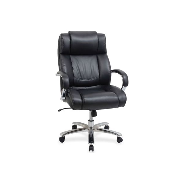 Lorell big and tall leather chair with ultracoil comfort - black big & tall chair features bonded leather upholstery, a 500 lb. Weight capacity and ultracoil comfort with coiled comfort springs. This advanced foam-layering system is designed to offer deliberate, unique and zone-based support for a more enjoyable seating experience. Functions to customize position include pneumatic seat-height adjustment (3-1/2" from 19-7/8" to 23-5/8"), 360-degree swivel, tilt and tilt tension. Fixed, chromed metal arms feature upholstered pads. The 29" chromed metal base is equipped with 2" heavy-duty nylon, hooded, dual-wheel casters. seat measures 23-5/8" wide x 20" deep. Back size is 24-2/5" wide x 25-3/4" high.