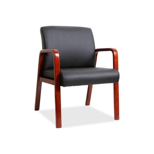 Lorell Black Leather Wood Frame Guest Chair - Black with Mahogany Frame