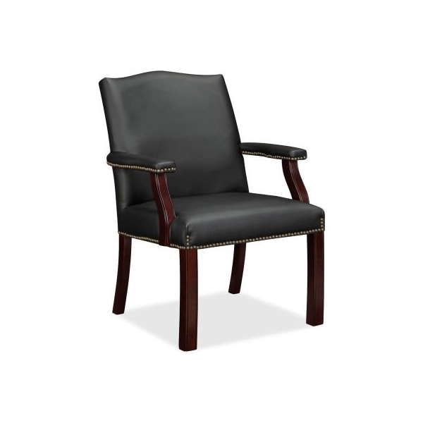 Lorell bonded leather guest chair - black guest chair offers luxurious seating to enhance your waiting room or office. Let your guests enjoy the comfort of a cushioned seat and back upholstered in bonded leather. Wooden arms feature upholstered arm pads and nail head trim. Sturdy base is also made of wood and equipped with four legs for stable seating.