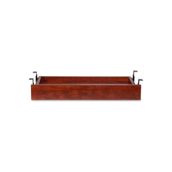 Lorell cherry laminate universal center drawer, 25.6"w x 15.1"d x 3.6"h universal center drawer can be easily attached to desks in the lorell essential series and most other desks with an adjustable mount. Drawer slides under the desk and out for easy access. Drawer features a durable laminate surface.