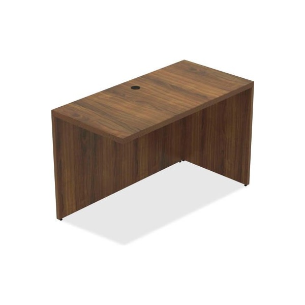 Lorell chateau series walnut laminate desking, 47.3" x 23.6" x 30" desk return is part of the lorell chateau series that offers contemporary laminate office furniture with a durable design and multiple configuration options. The 1-1/2" thick top features a reeded edge detail for a distinct look. Design also includes full modesty panel for privacy and high-quality, walnut laminate surface for durability. One grommet hole in the top allows easy cord routing. Connect this return to chateau desks and credenzas to create the office that works best for you. Add lorell essentials series pedestals (sold separately) to expand your storage options. view the chateau collection here.