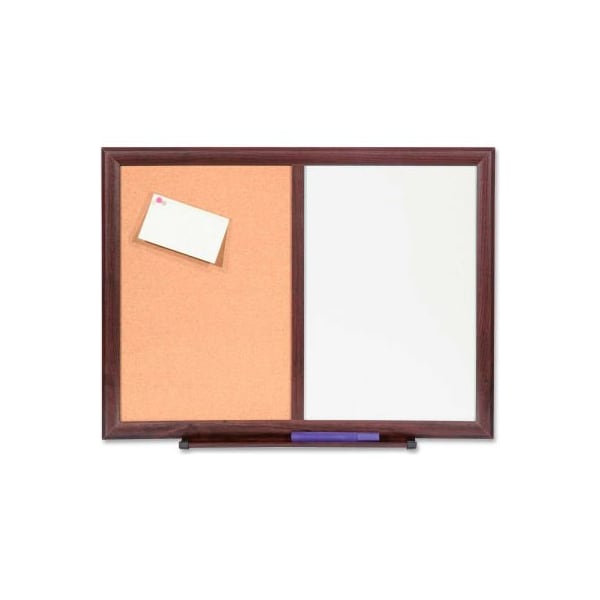 Lorell dry-erase/bulletin combo board with mahogany frame, 24"w x 18"h combo dry-erase board offers two ways to get your message posted and read. Half is a nonmagnetic dry-erase board with a melamine surface where you can write, erase and rewrite notes, reminders and more. The other half features a cork bulletin board where you can pin invitations, tickets, reminders and other bits of vital information. Combo board includes a marker tray and is highlighted with an elegant mahogany finish frame made of medium-density fiberboard.