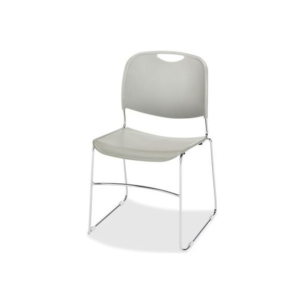 Lorell lumbar support stacking chair - gray stacking chairs feature a sturdy polymer seat and back with built-in lumbar support for comfort even in a waiting room. The frame is made of sturdy metal wire with a chrome finish. Small, convenient slot in the top of the back makes it easy to place and relocate chairs. Weight capacity is 250 lb. Stack chairs up to 10 high.