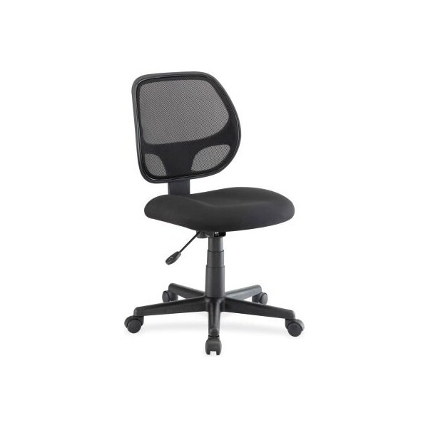 Lorell multi-task chair with mesh back - black multi-task chair offers a breathable mesh back and cushioned seat upholstered in fabric for your comfort. Functions include pneumatic seat-height adjustment from 17-1/2" to 21-3/4" high and 360-degree swivel. 23-3/5" diameter, five-star nylon base is equipped 50mm dual-wheel casters with 38mm hoods for easy mobility. Weight capacity is 250 lb. Seat measures 19-1/4" wide x 18-1/4" deep. Back size is 17-3/4" to 17-1/4".