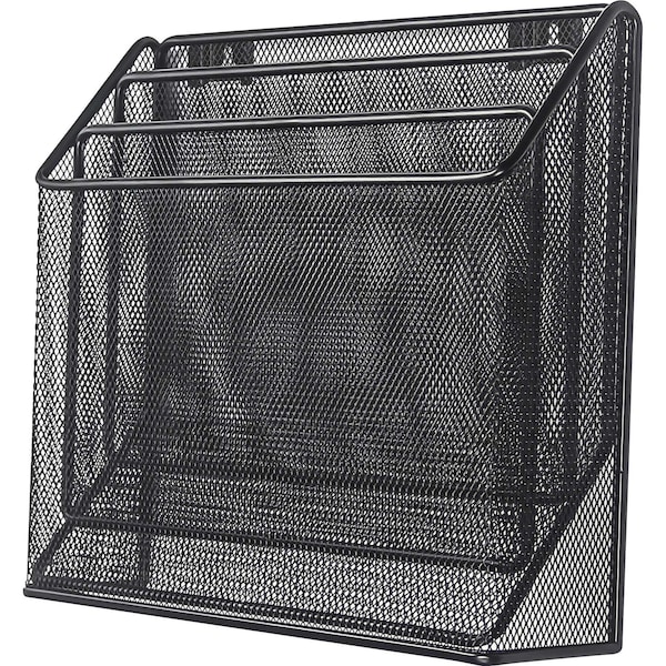 Stay organized and keep your items within easy reach with this three-tier organizer. Durable, metal construction securely supports and contains a variety of items for efficient, lasting organization. Rolled rim is smooth to the touch to prevent snagging and ensure safe handling. Desk organizer with included mounting hardware is perfect for organizing files, magazines, file folders and more.