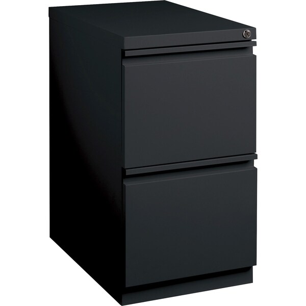 Mobile pedestal file features two high-side drawers with full extension for great access and plenty of filing space. Steel ball-bearing, drawer suspension delivers smooth drawer opening and closing. Factory-installed, core-removable lock keeps your letter-size files secure. Drawer pull extends across the entire, recessed drawer front for easy access. Casters are hidden from view and move the pedestal easily when necessary. Pedestal with a black finish is made of steel and offers a 19-7/8in depth to slide easily into your cubicle or other office configuration. Mobile pedestal file meets or exceeds applicable ANSI/BIFMA standards.