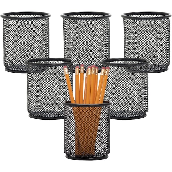 Pencil Cups, Steel Mesh, 3-1/2"x3-7/8", 6/BX, Black PK
