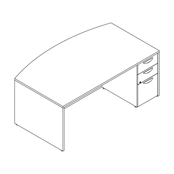 Right-pedestal Bowfront Desk, B/B/F, 72inx42inx29in, Gray Elm