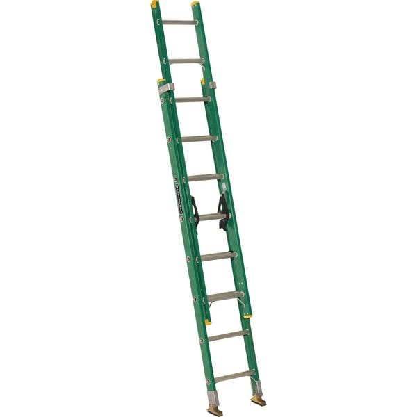 Extension Ladder, Material Fiberglass, Industry Ladder Size 16 ft, Extended Ladder Height 13 ft, ANSI Type II, Load Capacity 225 lb, Adjustable Increments 12 in, Bottom Width 17 1/4 in, FE0600 Series, Rail Type Non Conductive, Shoe Design Swivel Safety, Includes Quicklatch Runglock System, Outside Slide Gides, Mar Resistant Rail End Caps. All The Necessary Warning, Caution, Danger and Instruction Labels, Model/Duty Rating Label, Rung Shape D-Rung, Closed Height 8 ft, Section Length 96 in