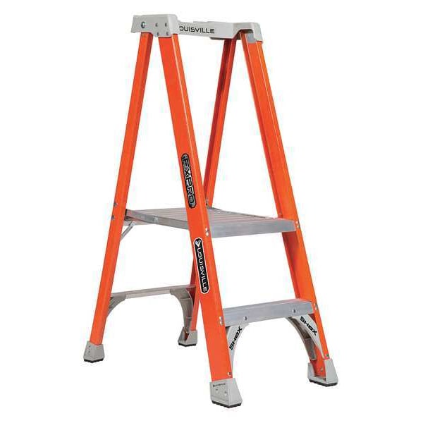 Platform Stepladder, Material Fiberglass, ANSI Type IA, Ladder Height 4 ft 4 in, Load Capacity 300 lb, Number of Steps 2, Base Spread 33 in, Bottom Width 21 39/50 in, Step Depth 3 in, Step Tread Ribbed, Series FXP1700, Includes ProTop with Tool Slots and Built-In Magnet, SHOX Impact System, DaBoot, Standards ANSI, OSHA Compliant, Rung/Step Spacing 12 in