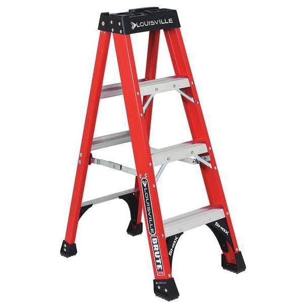 Stepladder, Material Fiberglass, ANSI Type IAA, Ladder Height 4 ft, Load Capacity 375 lb, Number of Steps 3, Base Spread 28.9 in, Bottom Width 19 5/8 in, Step Depth 3 in, Step Tread Ribbed, Series FS1400HD, Includes Molded Top, Standards ANSI, OSHA Compliant, Rung/Step Spacing 12 in