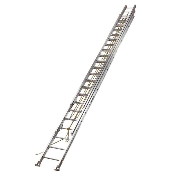 Extension Ladder, Material Aluminum, Industry Ladder Size 60 ft, Extended Ladder Height 48 ft, ANSI Type I, Load Capacity 250 lb, Adjustable Increments 12 in, Bottom Width 21 1/2 in, AE1600 Series, Rail Type I-Beam, Shoe Design Swivel Safety, Includes 3 Sections. All The Necessary Warning, Caution, Danger and Instruction Labels, Model/Duty Rating Label, Rung Shape Round, Closed Height 24 ft, Section Length 20 ft, Net Weight 173 lb, Rung/Step Spacing 12 in