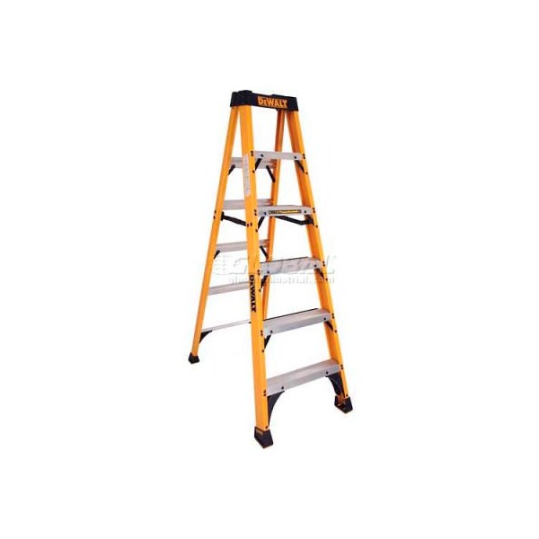 Dewalt type 1a fiberglass step ladder - 6' dewalt fiberglass step ladders are ideal for industrial and commercial applications. Features durable top with magnet and multiple tool slots. Pinch-resistant spreader braces provide stability. Large step surface provides greater comfort. Includes double-riveted steps and non-marring, slip resistant shoes. 300 lb. Capacity. Meets osha requirements and ansi standards.