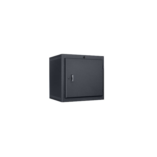 RackWall Mount10U, 18inD, 1pr Fixed Rails, Solid Front Door, Blk