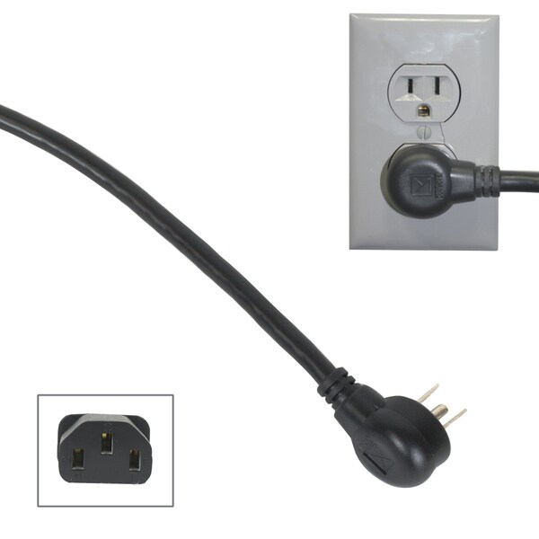 IEC Power Cord, 18in, 90degree Right Plug, 10pk