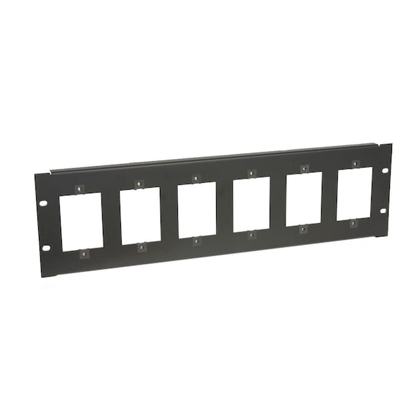 Rack Panel3U, Mounts Six 1gang Devices, Blk