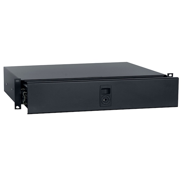Rack Utility Drawer w Key Lock, Slam Latch, Mat Liner, 2U x 14437inD, 50lbs capacity
