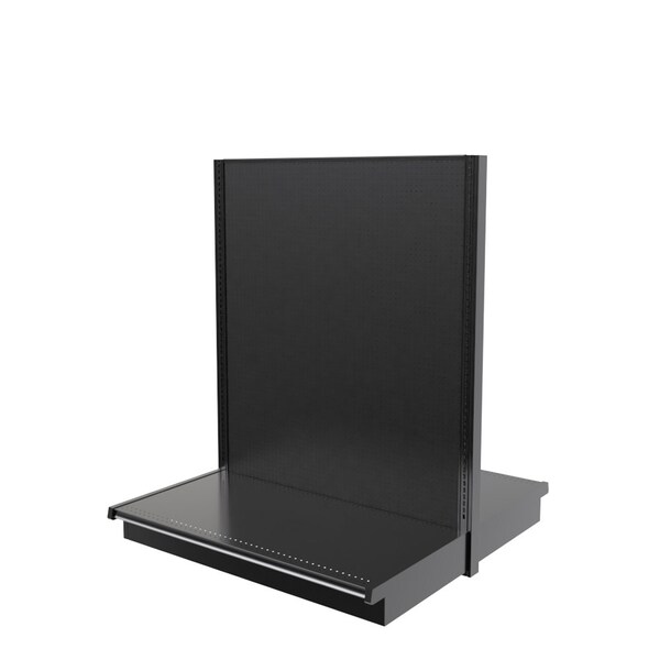 How to Build Store Aisles with Lozier Black Metal Gondola Shelving This retail shelving display is for sale in starter units and add-on units. It's easy to order. Begin each aisle with one starter unit. Then simply connect add-on units to get to your desired aisle length. If your desired aisle length is 20 feet, as an example, then buy 1 starter and 4 add-on units. The units have built-in grooves that allow them to easily connect to each other. This new black gondola shelving display is a low cost retail metal store fixture. DGS Retail is a gondola shelving manufacturer. We offer low Lozier gondola shelving pricing to the retail industry. Used in store design layouts to merchandise a variety of products at the point of sale. This retail shelving design is a gondola shelving system that is heavy duty and designed to support a lot of weight. It features black melamine laminated MDF wood pegboard panels that are high quality but priced cheap! This metal store fixture is a double sided gondola. That means that it is used to create store aisles or retail island displays. Because this unit is commercial grade it can support a tremendous amount of weight. Use it to display wine bottles and other grocery products packaged in glass. Use it to display soda and other heavy liquid items. Gondola Racking System Specifications This retail shelving system is modular in construction. It is for sale in a starter section and an add on section. Using these two units it is possible to assemble a complete store's worth of gondola shelving. The unit is constructed out of black metal. The metal is finished with a polyester finish that is baked on at high temperatures. This makes it beautiful and resistant to wear. The starter unit has two vertical gondola uprights. Each upright has a series of holes or slots on it. These are used to insert shelves or in some case just a single shelf. The display has dimensions of 48" wide by 72" high and it is 47" deep overall.