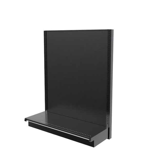 22" Deep Base Shelf Retail Store Shelving That's Affordable Create an ideal high-end shopping environment at a low cost with this great black gondola shelving unit from DGS Retail! A leading gondola shelving manufacturer, DGS Retail supplies supermarkets, convenience stores and liquor stores with gondola systems and parts at wholesale pricing. Many times our sale prices for new retail display shelving systems are cheaper than what you can get for used! So why buy second hand retail shelving? This black display rack is a retail wall display. It is a single sided gondola shelf that is engineered to be placed on the floor in front of a wall. It is a freestanding retail wall display that can support a lot of weight. This is a heavy duty store fixture that you can order black metal shelves for. Matching Lozier black metal gondola shelves are sold separately. Metal Retail Shelving Sizes This display is usually specified to be used in retail shopping environments. It is a metal commercial store fixture that is rated to support up to 1250 lbs. This gondola shelving unit is sold in a starter and add-on units. The gondola starter unit is 48W x 84H x 25D. It is sold complete with two metal gondola uprights. These have holes every inch to accept metal gondola shelves for sale separately. The starter unit has a 22D black base shelf and a black laminated wood pegboard back panel. To increase the size of your aisle is easy. Just use the gondola assembly instructions and attach a 48W add-on unit to the starter unit. The add-on displays are the same as the starter except the only have 1 slotted standard. This is because the standards are shared from one 48 wide display to the next.
