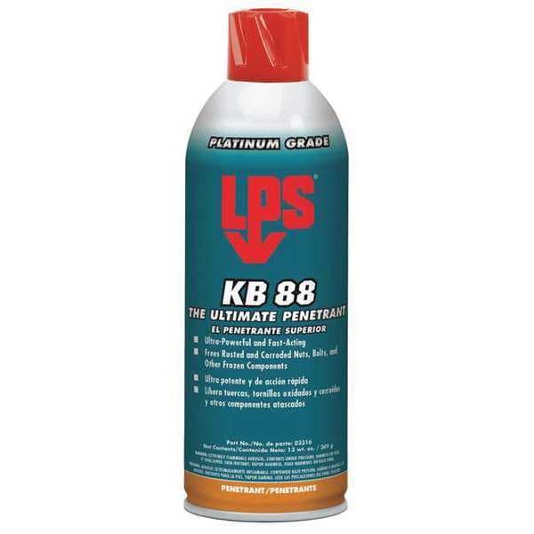 Penetrating Lubricant, LPS, KB-88, Net Fill 13 oz, Container Size 16 oz, Aerosol Can, Petroleum Distillates, Min. Operating Temp. -40 Degrees F, Max. Operating Temp. 300 Degrees F, H2 NSF Rating, Yes 50 State VOC Compliant, 24 Percent VOC Content, Red, Odorless No, Flammable, Extremely Flammable Aerosol (Category 1), Flash Point 159.8 Degrees F, A-A-50493C Class B Types I and II, USDA Certified Biobased Product Not USDA Certified Biobased Product