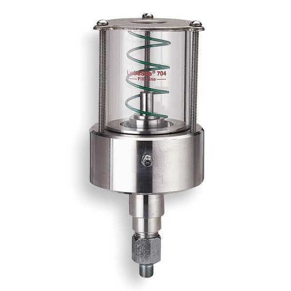 Grease Feeder, Included Grease Type Not Applicable, Lubrication Point Type Single, Feeder Capacity 4 fl oz, Operating Temperature - Minimum -10 Degrees F, Operating Temperature - Maximum 450 Degrees F, Spring Force 9.1 psi, Connection Size 1/8 in, Pre-Filled Status Not Applicable, Connection Type NPT, Feeder Material Aluminum, Flow Rate Adjustability Non-Adjustable, Delivery Method Continuous, Includes Springs, Refillable Yes, Grease Color Yellow, Overall Diameter 3 1/4 in