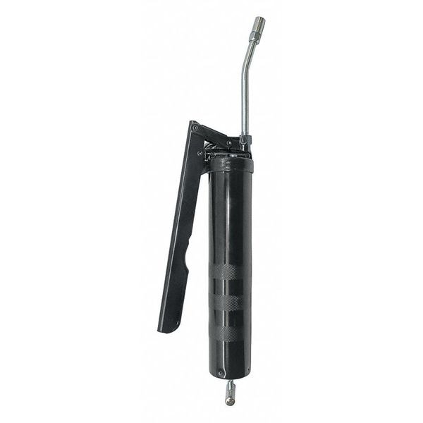Manual Grease Gun, Grease Gun Loading Method Bulk, Cartridge, Grease Gun Handle Style Lever, Nozzle Extension Type Rigid Pipe, Strokes per Oz. 40, Max. Operating Pressure 6,000 psi, Cartridge Capacity 14 oz, Bulk Capacity 16 oz, Pipe Length 4 in, Black, Tube Material Steel, Tether Style Not Tether Capable, Variable Stroke / Full Stroke Variable Stroke, 1 oz, Tool Length 14 63/100 in, For Use With Any Greaseable Fitting, Application Agriculture, Automotive, Industrial