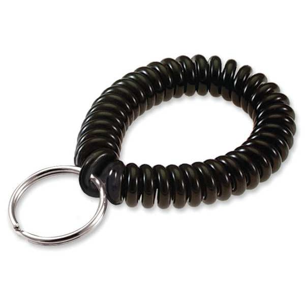Key Chain, Wrist Coil, Material Polyurethane, Color Black, Overall Length (In.) 2, Ring Dia. (In.) 7/8, Cable Dia. (In.) 2, Fits Wrist, For Use With Keys, Includes wrist coil, split ring, Package Quantity 5