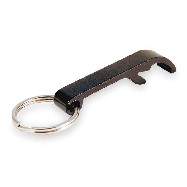 Bottle Opener, Black, Ring Dia. 7/8 In., Overall Length 2 1/4 In, Aluminum, Includes Split Key Ring, Package Quantity 10