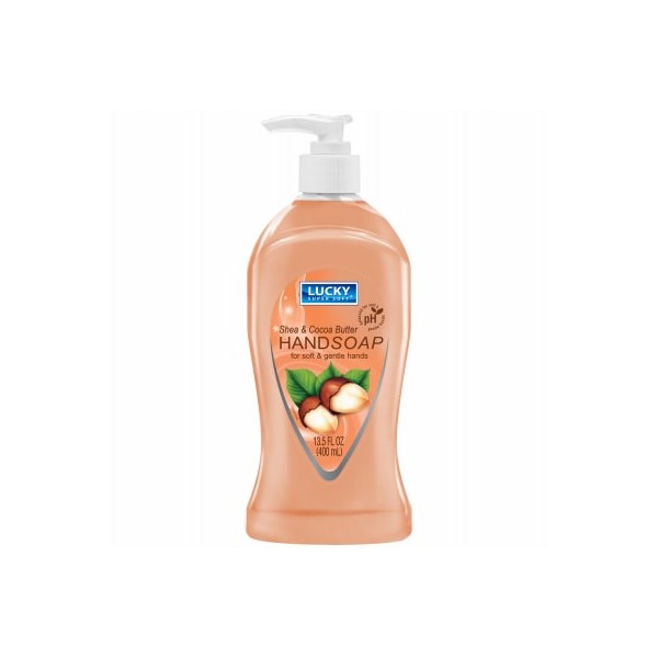13.5OZ Shea and Cocoa Butter Liquid Hand Soap with pump for hand washing to decrease bacteria on the skin.