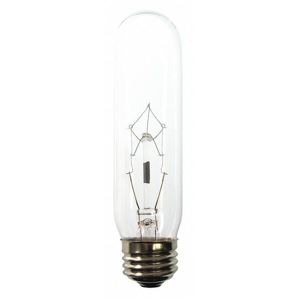 Incandescent Bulb, Bulb Base Type Medium Screw (E26), Bulb Housing Glass, Bulb Shape T10, Bulb Finish Clear, Color Temperature 2800K, Lumens 420 lm, Light Technology Incandescent, Shatter-Resistant No, Trade Number 60T10, Voltage 120V AC, Watts 60 W, Bulb Beam Angle 180 Degrees , Rated Life 1,000 hr, Dimmable Yes, For Enclosed Fixtures No, Three-Way No, Light Color White, Rough Service No, Indoor/Outdoor Usage Indoor Only, Overall Length 5 5/8 in, Light Distribution Omnidirectional