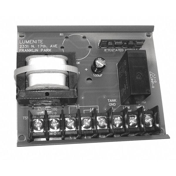Liquid Level Controller, Contact Form SPDT, Mounting Type Snap Track, Voltage 110V AC, Overall Height 1 5/8 in, Overall Length 3 7/8 in, Overall Width 3 1/4 in, Output Type Relay, Standards 3A, CSA, UL 353, Product Type Liquid Level Controller