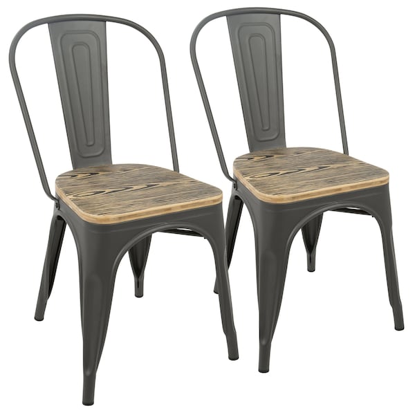 Oregon-Farmhouse Stackable Dining Chair in Grey and Brown, PK 2 (Discontinued)