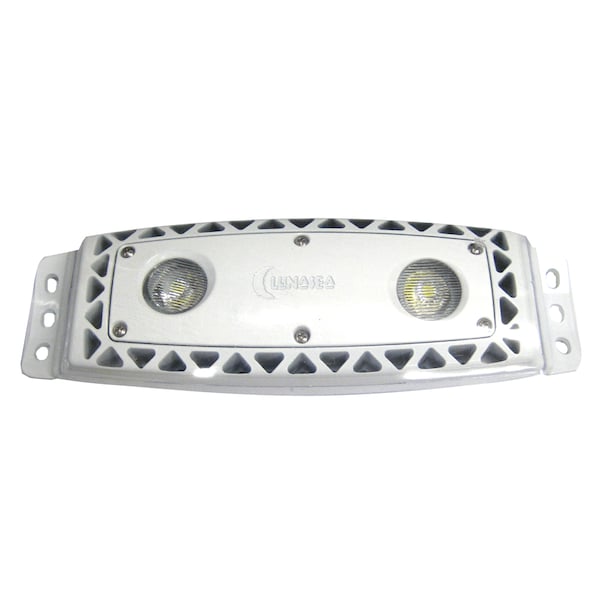 High Intensity Outdoor Dimmable LED Spreader Light - White. Lunasea Spreader offers 1,000 lumens of lights and focuses it from bow to stern., A spreader light that delivers. Designed for distance, engineered for quality. Using two of the brightest single point light source LED's married with a lens, Lunasea puts the light where you want it - On your boat deck! Most spreader lights cast a large quantity of light outside your boat while other spreaders focus their little intensity on small areas. If polarity is swapped on the power, the light dims down which is ideal for a beautiful night sipping on a cocktail. All this while only drawing 11 watts of power.", Features: IP67 rated, 3 different mounting positions, 1,100 lumens of light, White.