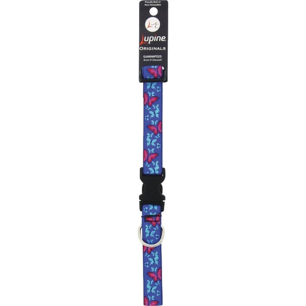 Lupine patterned dog collar made from woven jaquard nylon never printed so the pattern will not rub or peel off. Collar is fully adjustable with custom designed YKK buckles. Strong durable soft woven nylon webbing and welded steel D-ring.