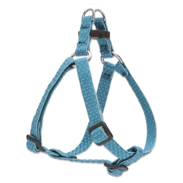 Lupine products are proudly built in Conway. Made from recycled plastic bottles. Bottles are melted purified and extruded into thread. The thread is then woven to create this unique soft yet strong material with a rich texture. Features -Made from recycled plastic bottles PET this unique plush weave is soft yet strong. -Beautifully stitched and finished using the highest quality hardware components. -Proudly built in New Hampshire. -Type - Step In Harness -Color - Tropical Sea -Size - 0.5 in. -Adjustable Size - 12-18 in.