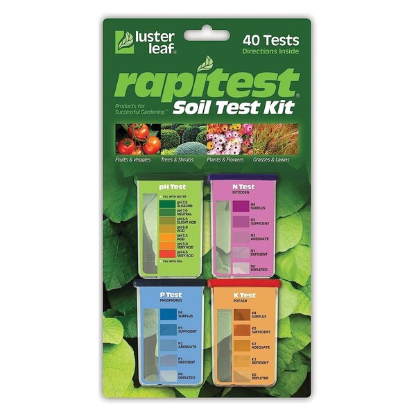 Its vital to know the existing pH, Nitrogen N, Phosphorous P and Potash K levels in garden soil. The rapitest Soil Test Kit continues to be the standard for home soil testing. The kit includes all components needed to for 40 tests: 10 each for pH, Nitrogen, Phosphorus and Potash. The patented color comparator system allows for easy color comparisons versus a typical printed color chart. Extensive, yet simple, instructions are included along with recommendations for over 400 plants. Test results allow the gardener the amend and fertilize appropriately, ensuring the best possible results