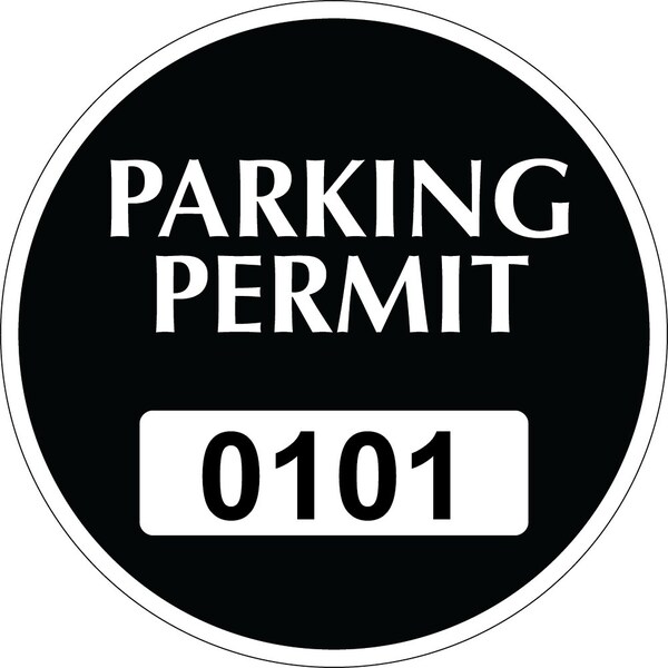 Repositionable Parking Permit Black 3.00in x 3.00in Circle Serialized 101-150