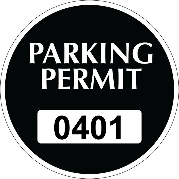 Repositionable Parking Permit Black 3.00in x 3.00in Circle Serialized 401-450