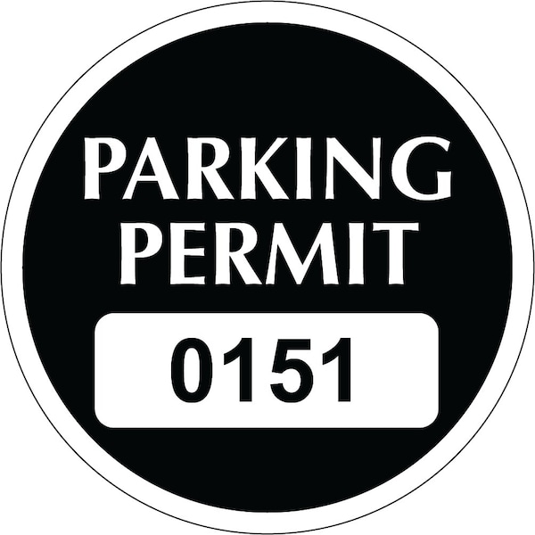 Static Cling Parking Permit Black 2.00in x 2.00in Circle Serialized 151-200