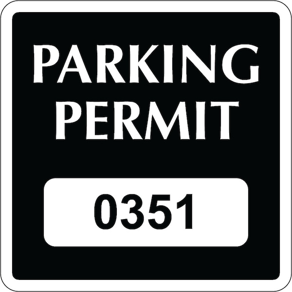 Static Cling Parking Permit Black 2.00in x 2.00in Square Serialized 351-400