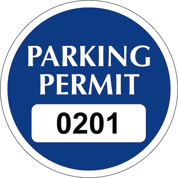 Static Cling Parking Permit Dark Blue 2.00in x 2.00in Circle Serialized 201-250