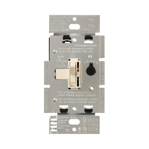 Lighting is a unique and we provide the work art of lighting. Natural variations, in the wide array of materials that we use to create each product, make every item a masterpiece of its own. Our lighting decor provides the fair and good finishing. We develop innovations, technologies and value that transcend architectural lighting for any budget or economy. This Light decor products will be more comfortable for dining room, living room and home decor. Features Provides the best dimming performance for LED bulbs Works with up to 150 watts of dimmable led & cfl bulbs or 600 watts of incandescent/halogen bulbs Can be used in single-pole or 3-way applications Toggle switch turns lights on/off and returns light to preset level, slider dims and brightens Specifications Color: Light Almond Amperage: 1.25 amps Watt: 150 watts Switch Type: Three-Way Poles: Single Pole Packaging Type: Clamshell CSA Listed: Yes UL Listed: Yes Volts: 120 volts OM Dimentions: 6 x 4 x 2.25 in. OM Weight: 0.3