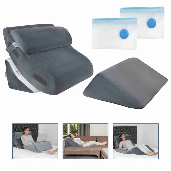 4 Pcs Orthopedic Bed Wedge Pillow Set Gre, Post Surgery, Relaxing, Back, Adjust Head Support Cushion (Discontinued)