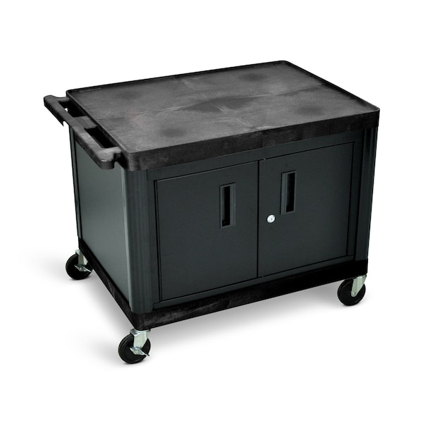 27"H AV Cart - Two Large Shelves, Cabinet