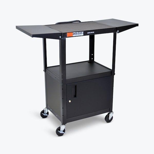 Adjustable-Height Steel AV Cart with Cabinet and Drop Leaf